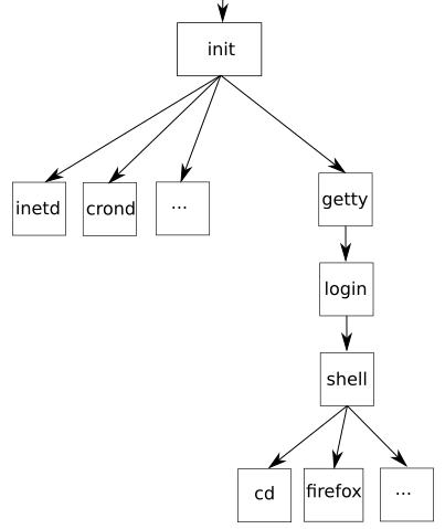 Par exemple, init démarre tous les processus nécessaires pour permettre aux terminaux branchés au système d’établir une connexion et de lancer le shell de base servant à la lecture des commandes de l’utilisateur. (Bash est l’interpréteur par défaut de la plupart des systèmes d’exploitation GNU/Linux)