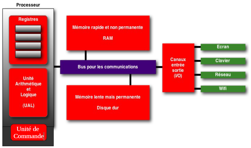 L’unité de contrôle (ou de commande) . C’est le coordinateur général qui lit les instructions du programme en mémoire et commande l’UAL pour exécuter ces instructions.